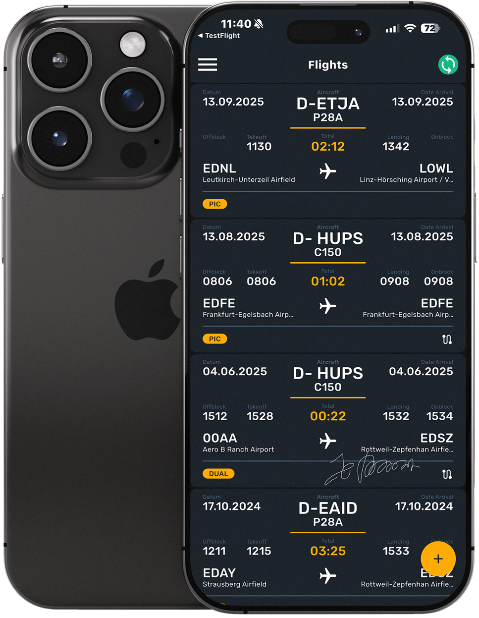Lerne unser digitales Flugbuch für Piloten der nächsten Generation kennen, wo modernste Technologie auf Luftfahrtexzellenz trifft. Als die fortschrittlichste Lösung auf dem Markt setzt unser Logbuch neue Maßstäbe in Sachen Benutzerfreundlichkeit, Genauigkeit und Konformität.